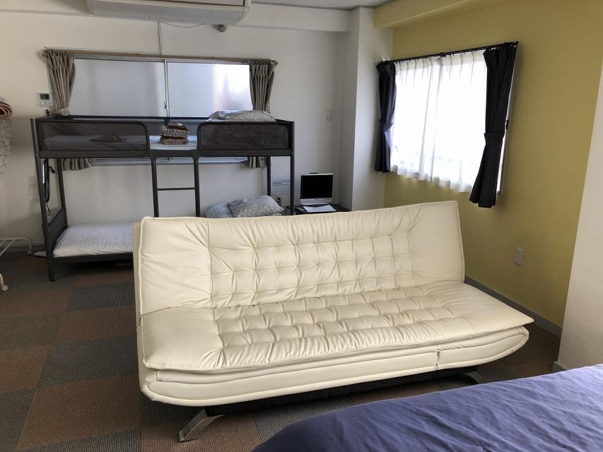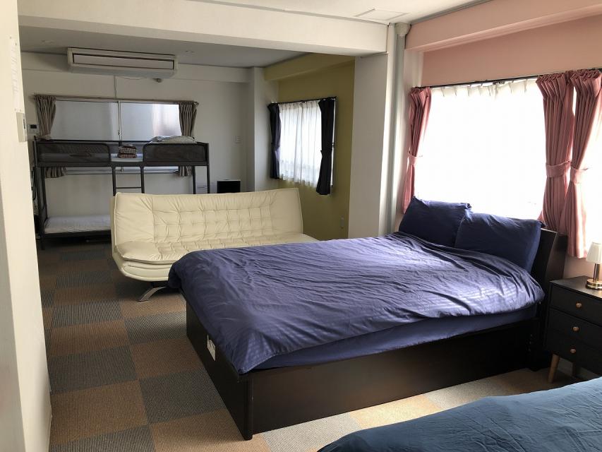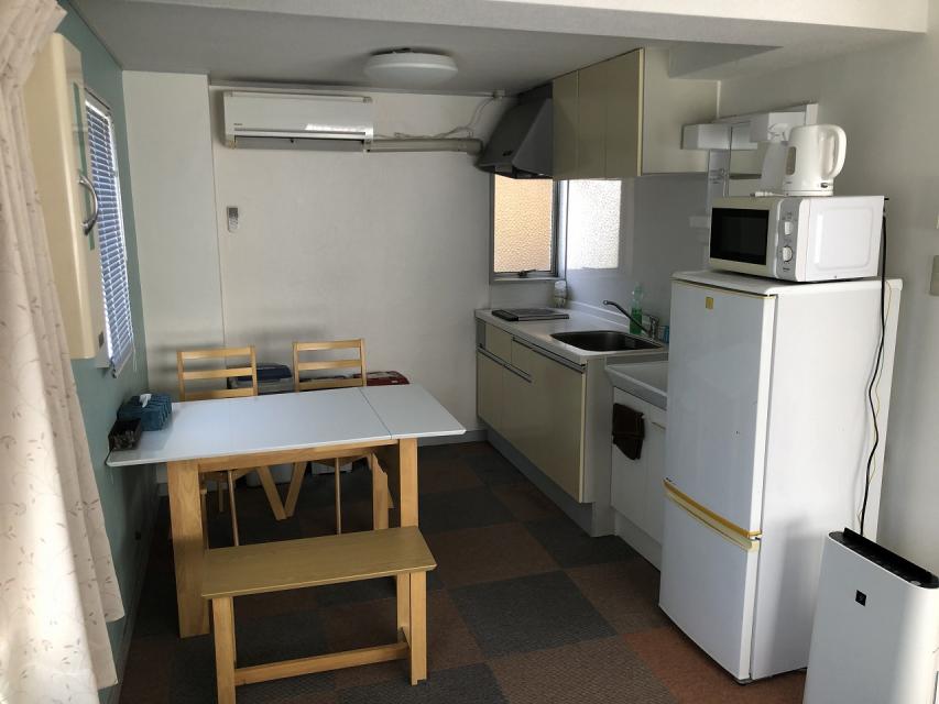 ベッド、二段ベッド、浴室、トイレ、キッチン、冷蔵庫など設備充実。