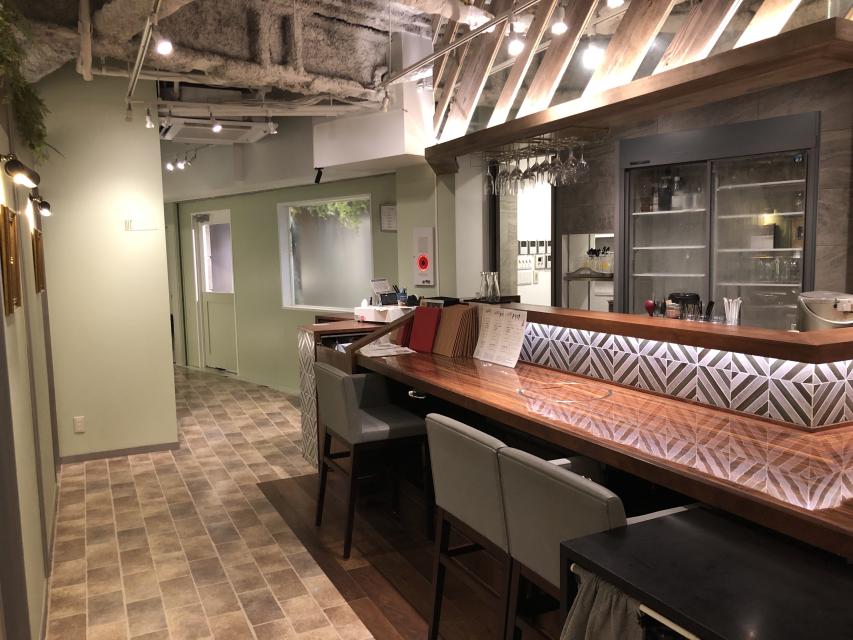 ■ 木目のバーカウンターが印象的なメイン空間